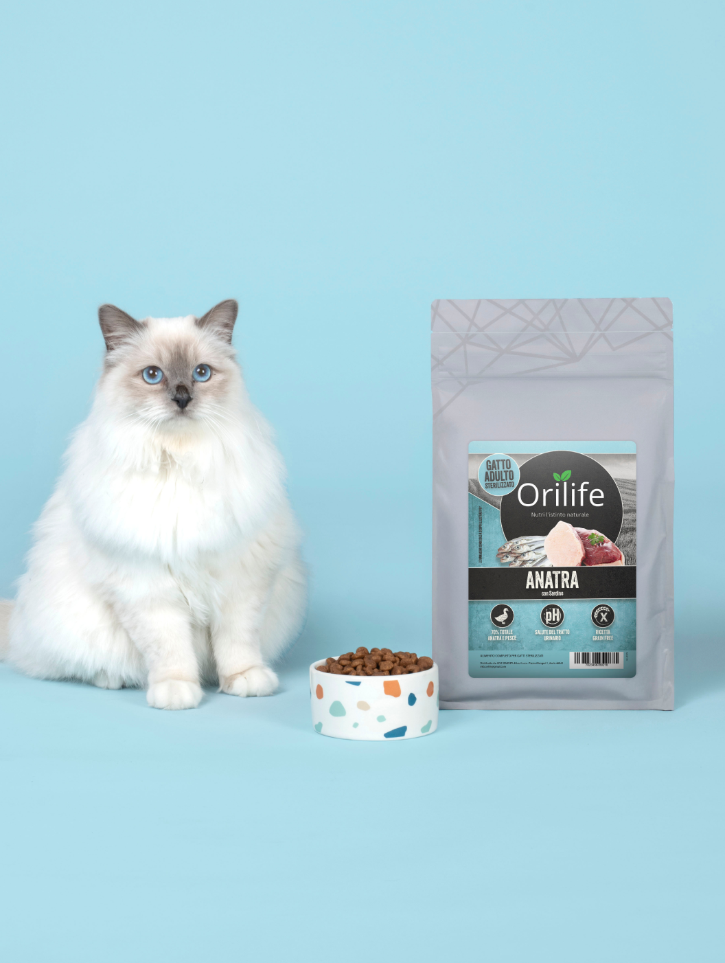 Crocchette grain free per gatti adulti sterilizzati, a base di anatra e sardine, formulate per favorire il controllo del peso, la digestione sana e la salute del tratto urinario. Arricchite con L-Carnitina, prebiotici e olio di salmone, offrono un’alimentazione completa e bilanciata.