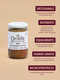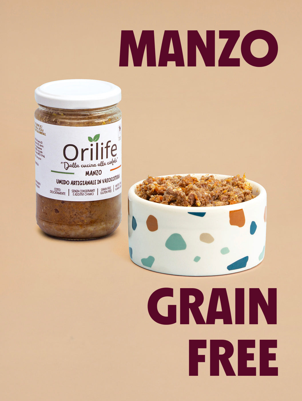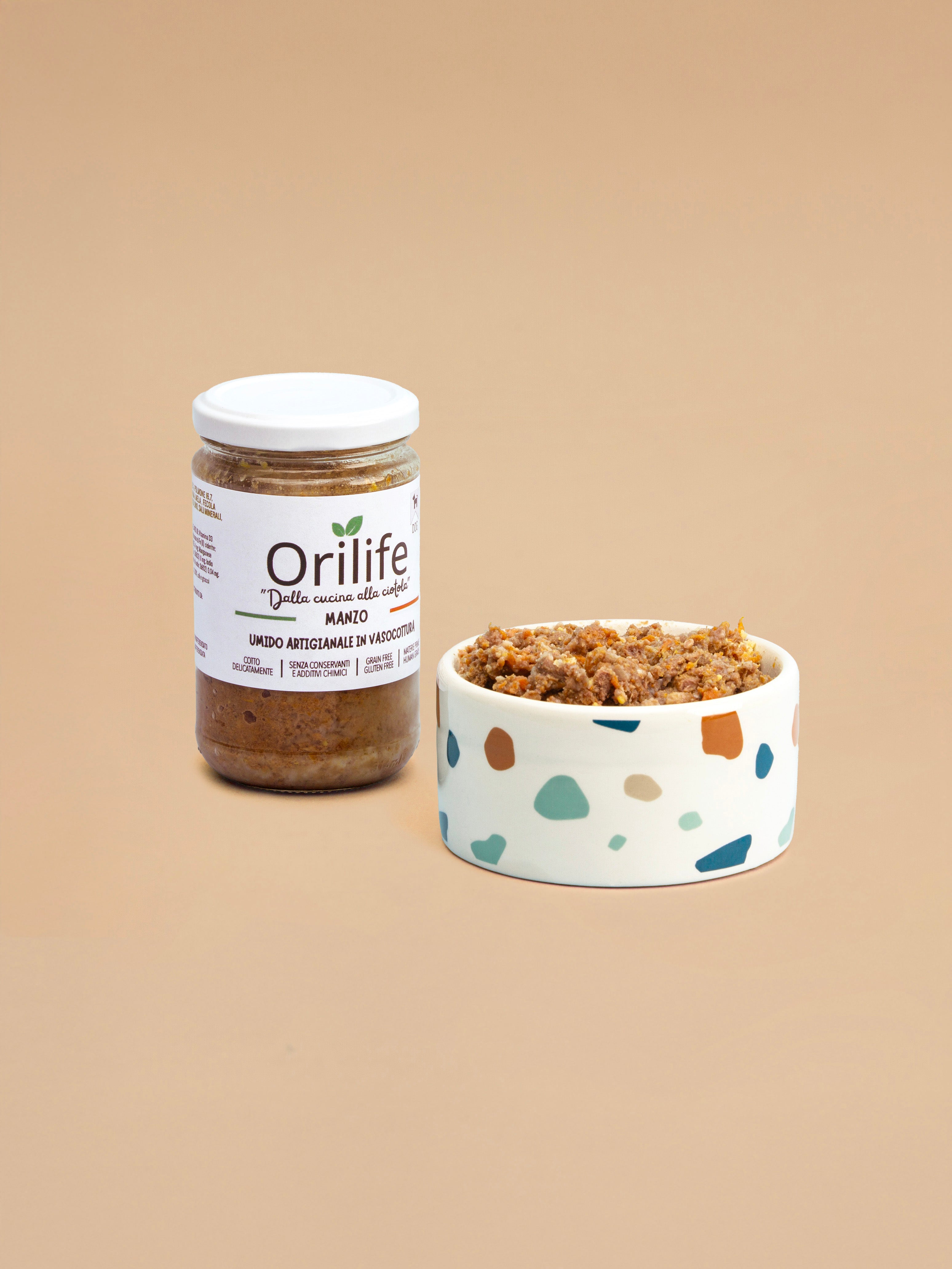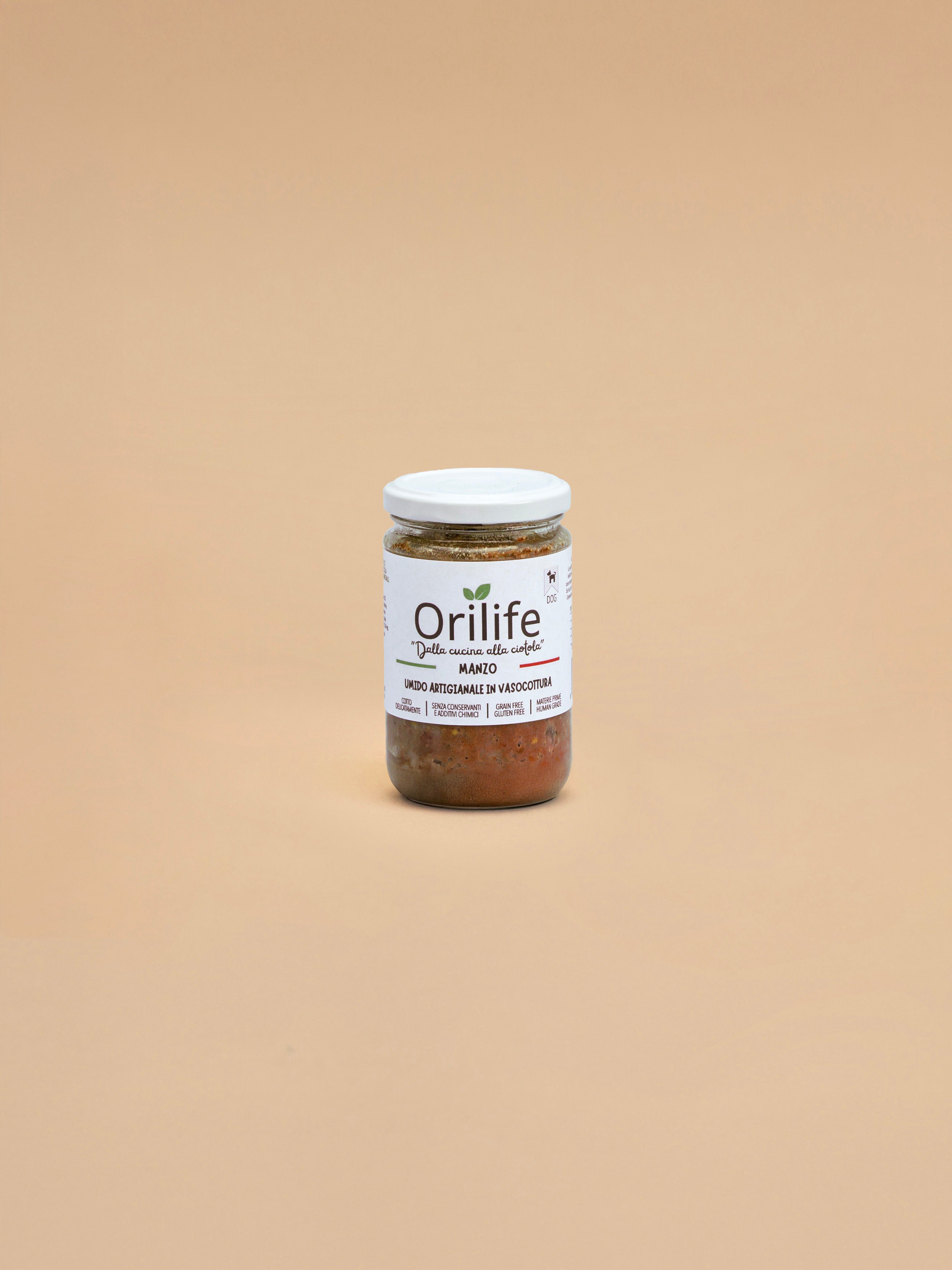Manzo in vasocottura: pasto completo e monoproteico per cani, preparato con carne di manzo human grade, frutta e verdura selezionate. Cotto delicatamente in vaso di vetro per preservare nutrienti e gusto, è naturalmente senza glutine e senza cereali, ipoallergenico e facilmente digeribile, ideale anche come alternativa alla dieta BARF.