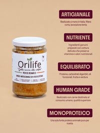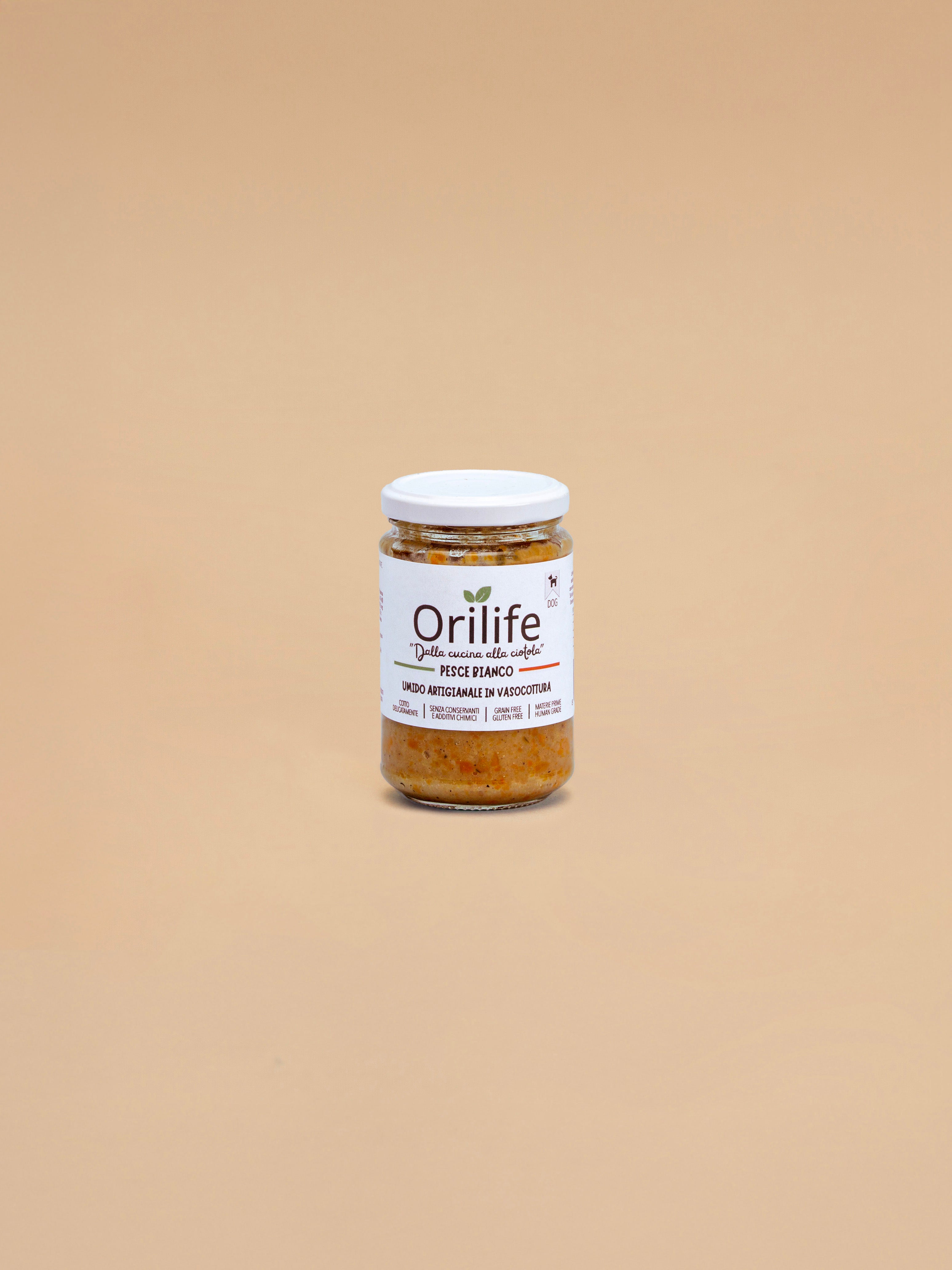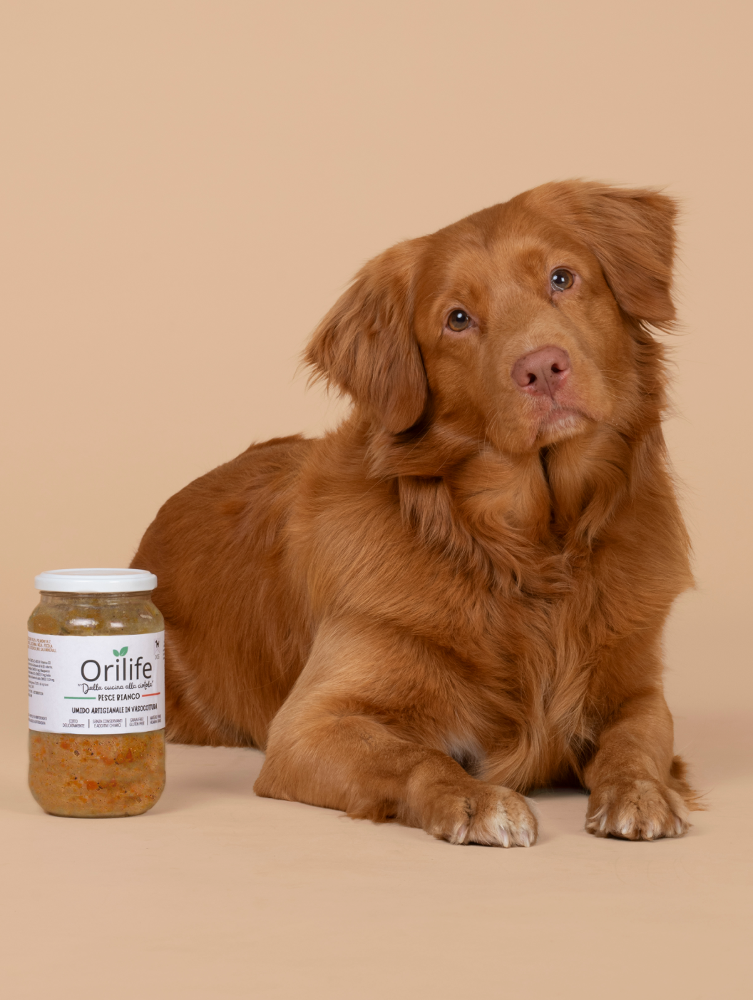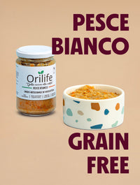 Pesce Bianco in vasocottura è un pasto completo e monoproteico per cani, preparato con pesce bianco human grade e arricchito con frutta e verdura selezionate. Cotto delicatamente in vaso di vetro per preservare nutrienti e gusto autentico, è naturalmente senza glutine e senza cereali, ipoallergenico e facilmente digeribile, ideale anche come alternativa alla dieta BARF e perfetto da portare in viaggio.