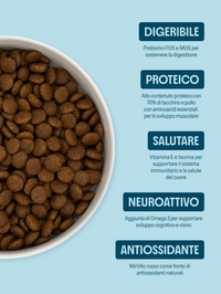 Crocchette grain free per gatti adulti a base di tacchino e pollo, ricche di proteine magre, vitamine e minerali essenziali. Favoriscono una digestione sana, la salute del cuore e del tratto urinario, con ingredienti funzionali come olio di salmone, mirtillo rosso e estratto di Yucca.